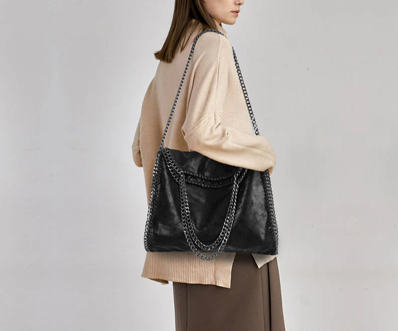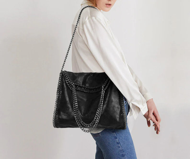 AMELIA – Sac à Main en Cuir Souple avec Bandoulière à Chaîne Argentée