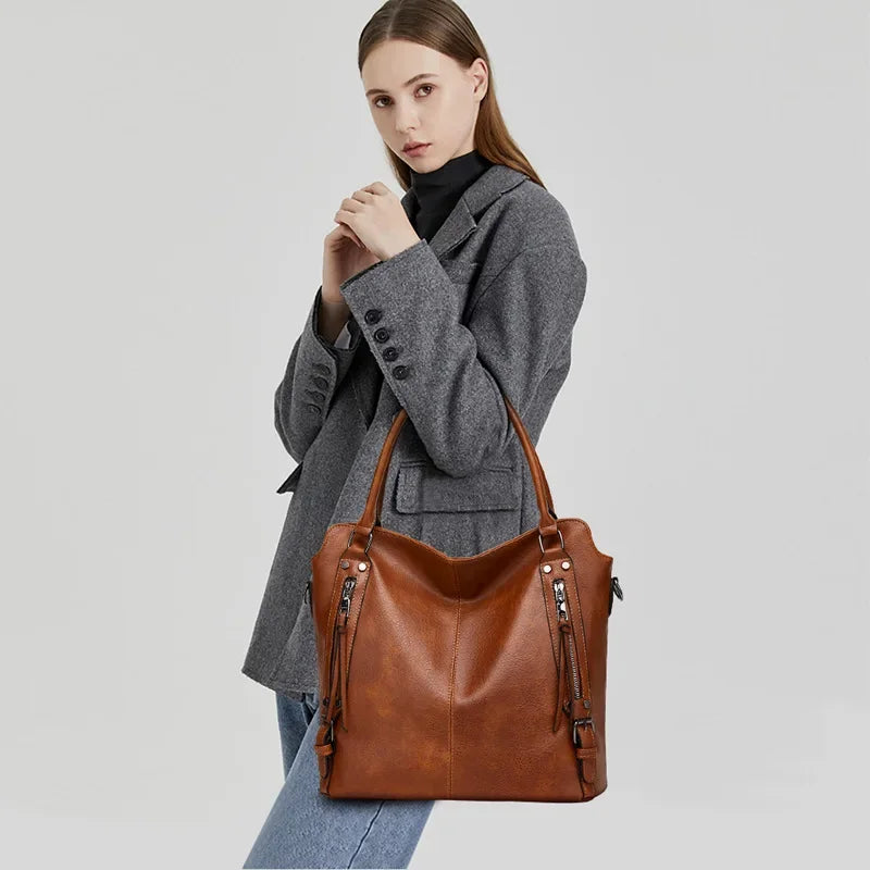 HELENA - Grand Sac à Main de Cours Multipoches avec Pochette