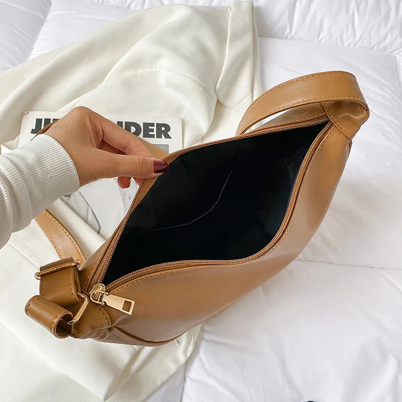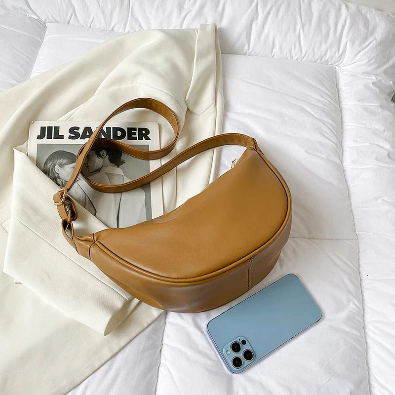 ISABELLA – Sac à Main Bandoulière Demi-Lune en Cuir Lisse de Luxe