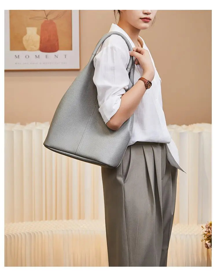 Son grand compartiment intelligent accueille facilement un ordinateur portable, des documents A4, une trousse ou une bouteille d’eau, tout en gardant une silhouette raffinée. Avec ses anses longues et confortables, le sac MIA se porte à l’épaule avec aisance, vous offrant liberté et élégance au quotidien.